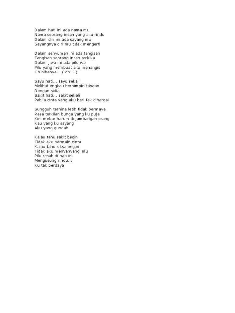 Lirik Lagu Kalau Kau Rasa Tak Di Hargai